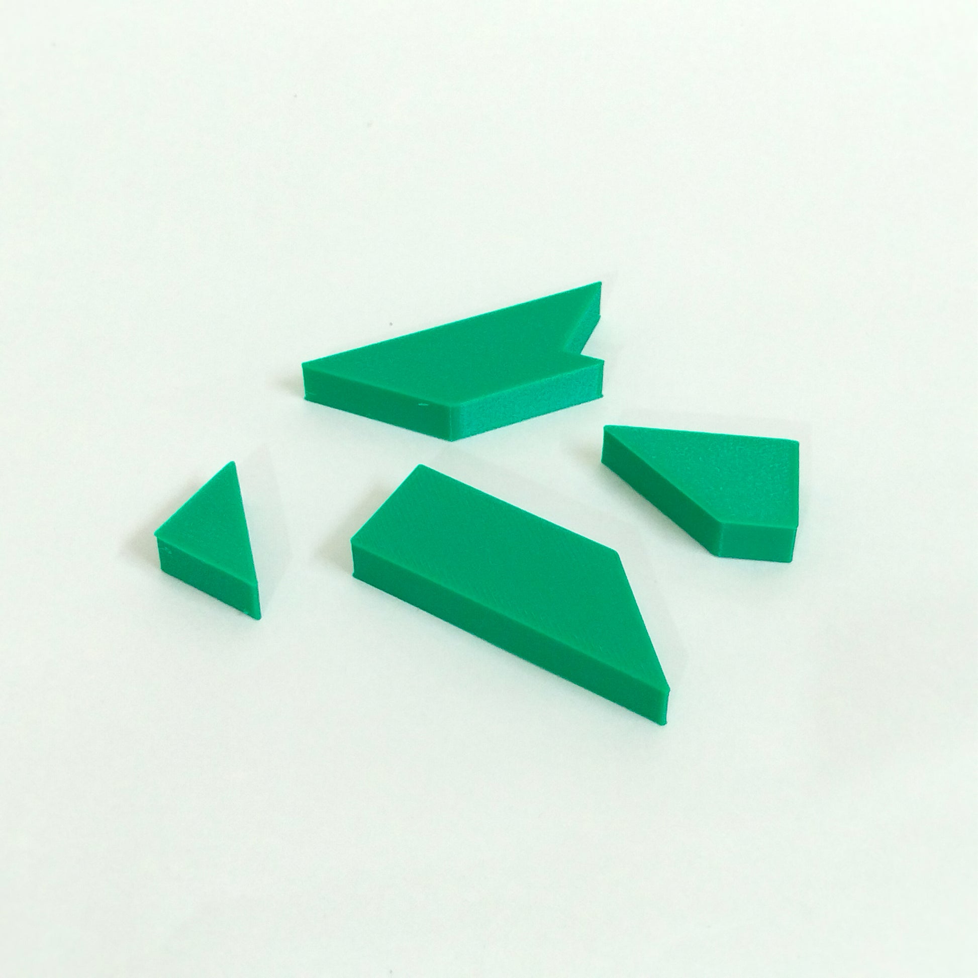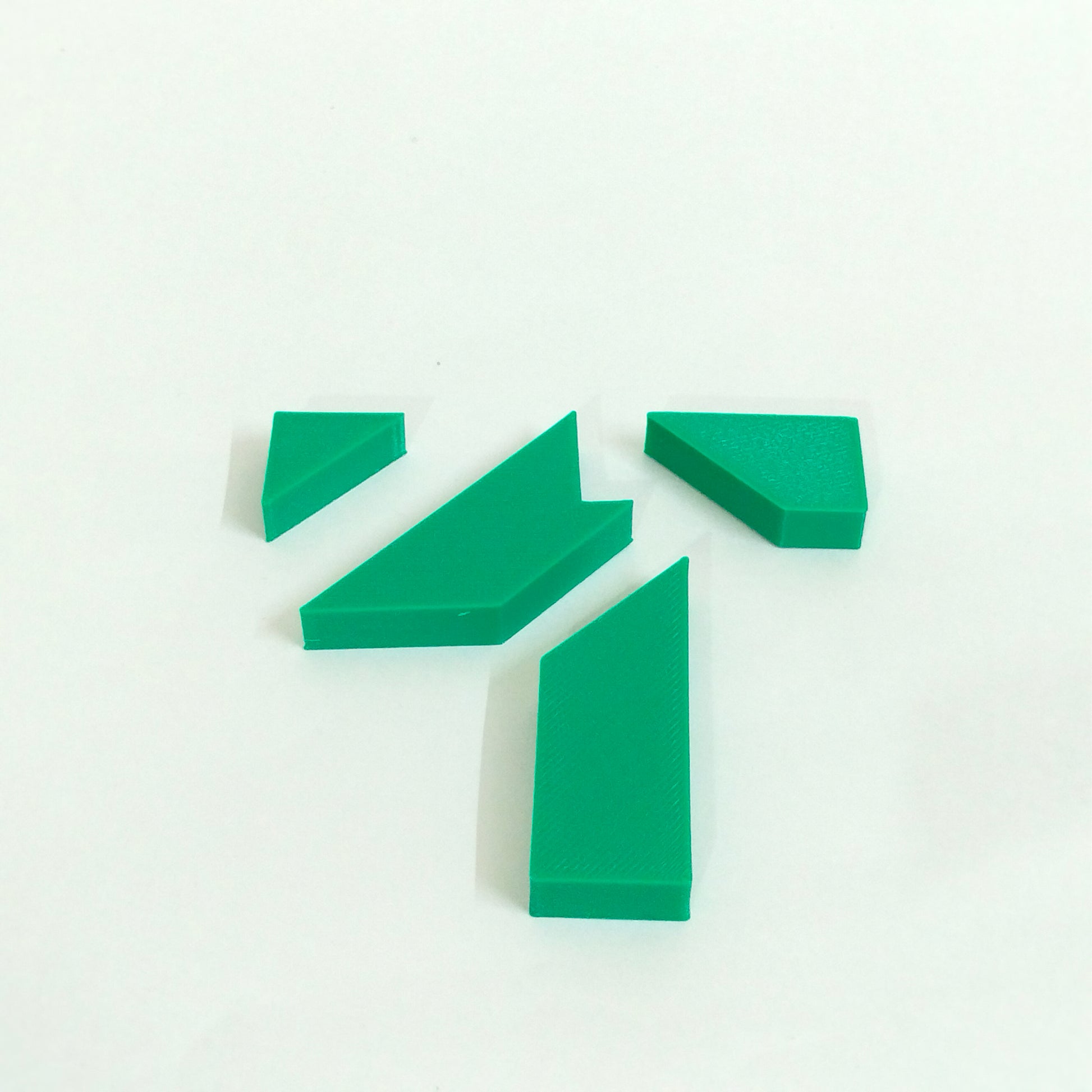 The set includes one isosceles right triangle, two right trapezoids, and one irregular pentagon-shaped piece with a puzzling angle that rarely behaves as you expect. At first glance, the task looks straightforward—but conventional placements almost always leave part of the T missing. The secret lies in breaking free from the “obvious” and exploring unexpected orientations for the irregular piece.